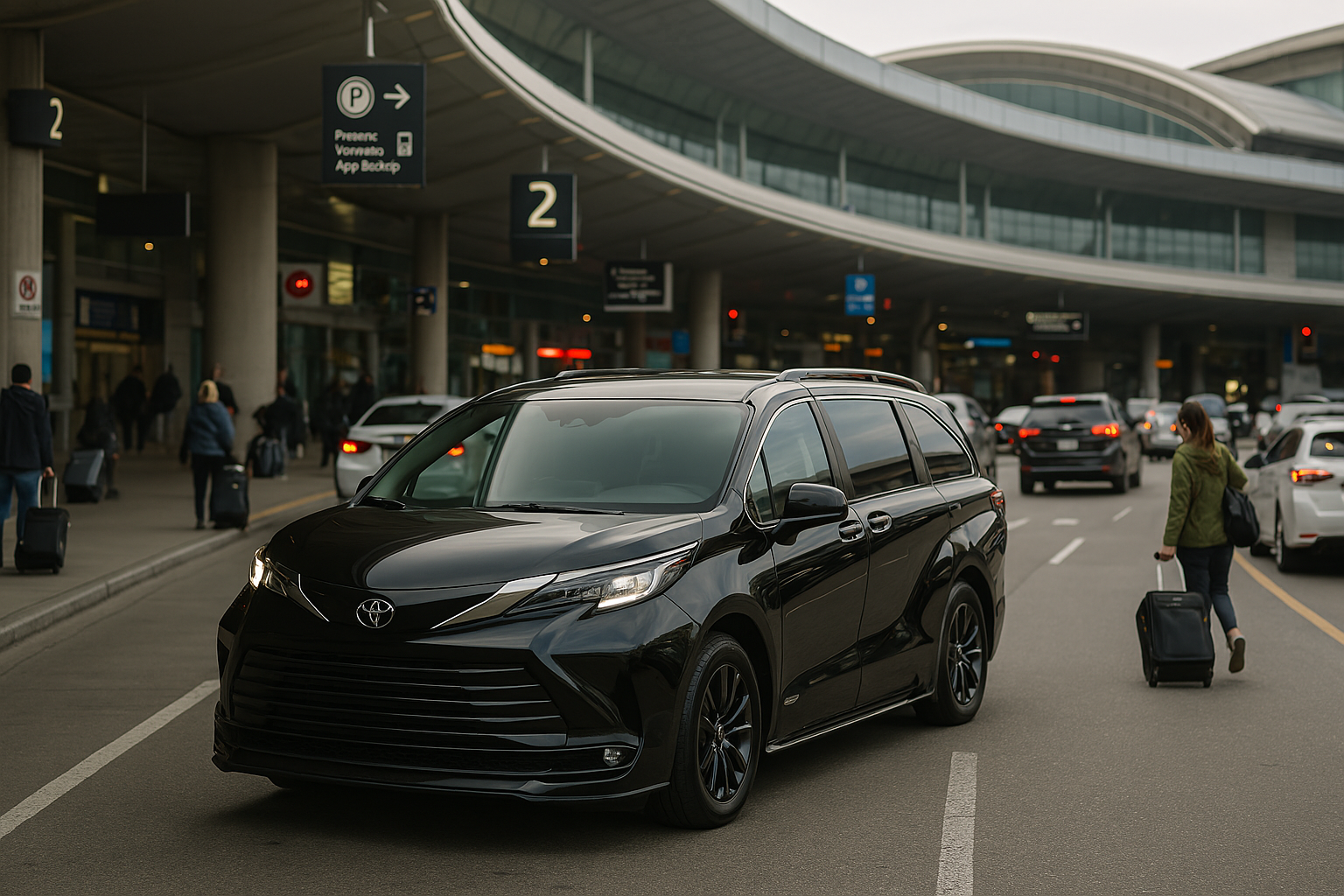 Our modern airport taxi vans accommodate 6-8 passengers with ample luggage space. Perfect for group airport transportation, family travel, and corporate transfers to Toronto Pearson, Billy Bishop, and Hamilton airports.
