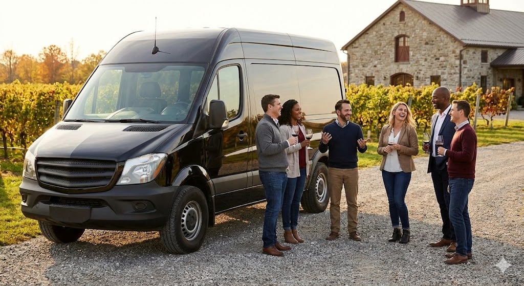 You will buy wine. Carrying three cases of Riesling through a parking lot is miserable. In a limo or Sprinter van, the driver loads your purchases into the climate-controlled trunk immediately. You walk hands-free to the next tasting. Plus, you have charging ports, water, and comfortable seats for the drive between vineyards.